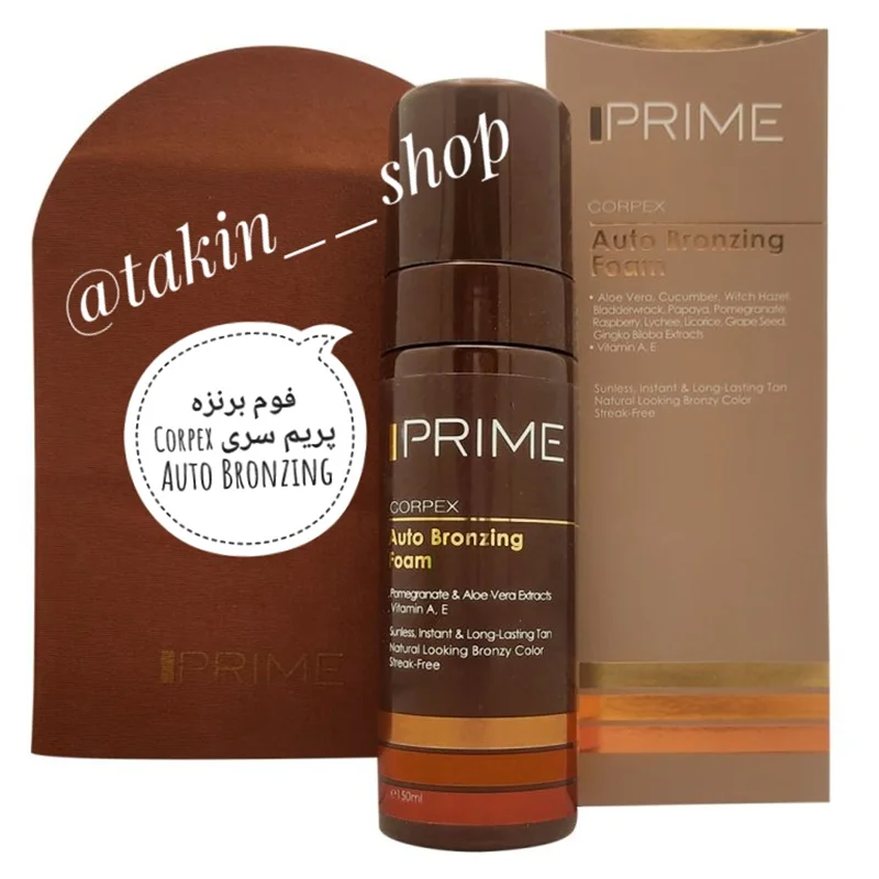 فوم برنزهکننده پریم یک برنزه کننده سریع با ماندگاری طولانی، بدون نیاز به نور خورشید است. این فوم حاوی ترکیبات دی هیدرو کسی استون (DHA) و اریترولوز بوده که با ایجاد رنگ برنزه طبیعی و یکنواخت پوست بدن شما را بدون نیاز به آفتاب به رنگ برنزه طلایی و درخشان میکند. همچنین این محصول دارای پد مخصوص برای پخش کردن فوم بر روی بدن میباشد. فوم برنزه کننده پریم حاوی ویتامینهای A و E بوده که میتواند بهعنوان یک ضد آفتاب از پوست شما در برابر اشعههای نور خورشید نیز محافظت کند.