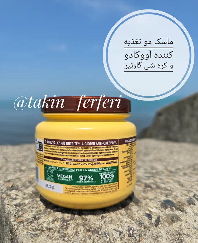 ماسک مغذی مو آووکادو و شی باتر گارنیر موهای خشک و وز را به صورت عمقی تغذیه میکند. آووکادو با فرمول مخصوصش موهای خشک را نرمتر میکند. شی باتر موجود در این ماسک مو نیز باعث تقویت و درخشان شدن موهای خشک و مات میشود.
