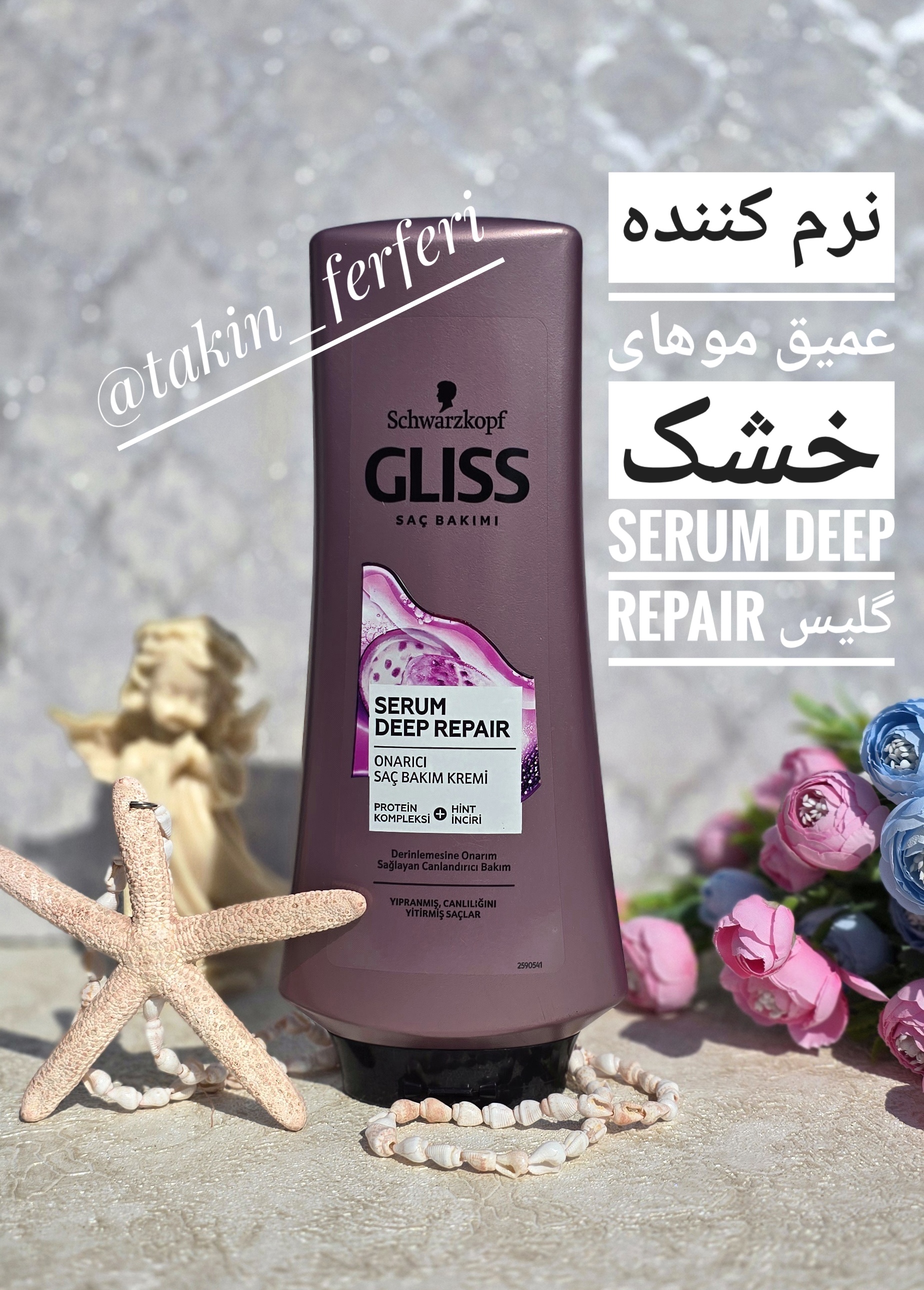 ئرم كننده مو گليس مدل Repair Deep Serum احيا كننده مو Gliss 360 ميلى ليتر محصولى كاربردى و لطافت بخش موها از برند گليس مى باشد. عملكرد مهم اين محصول، نرم كنندگى، طراوت بخشى به موها و احيا و بازسازى موهاى آسيب ديده است.موها در اثر عوامل مختلفى دچار آسيب مى شوند. از جمله ايـن عوامل استفاده مداوم از وسایل حرارتی مانند سشوار و اتو مو و استفاده از مواد شیمیایی نظیر رنگ مو هستند.نرم كننده مو گليس Repair Deep Serum یک انتخاب مناسب براى احياى موهاى آسیب ديده است.